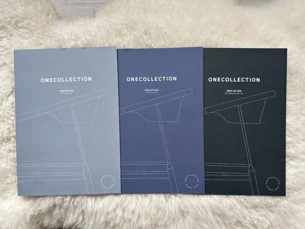 Årlige prislisterHer ses omslaget på prislister lavet for Onecollection og House of Finn Juhl.